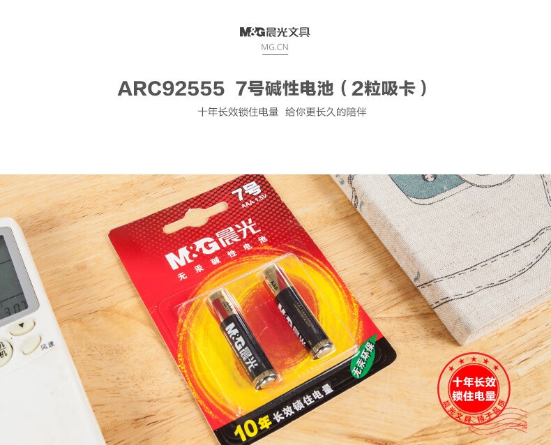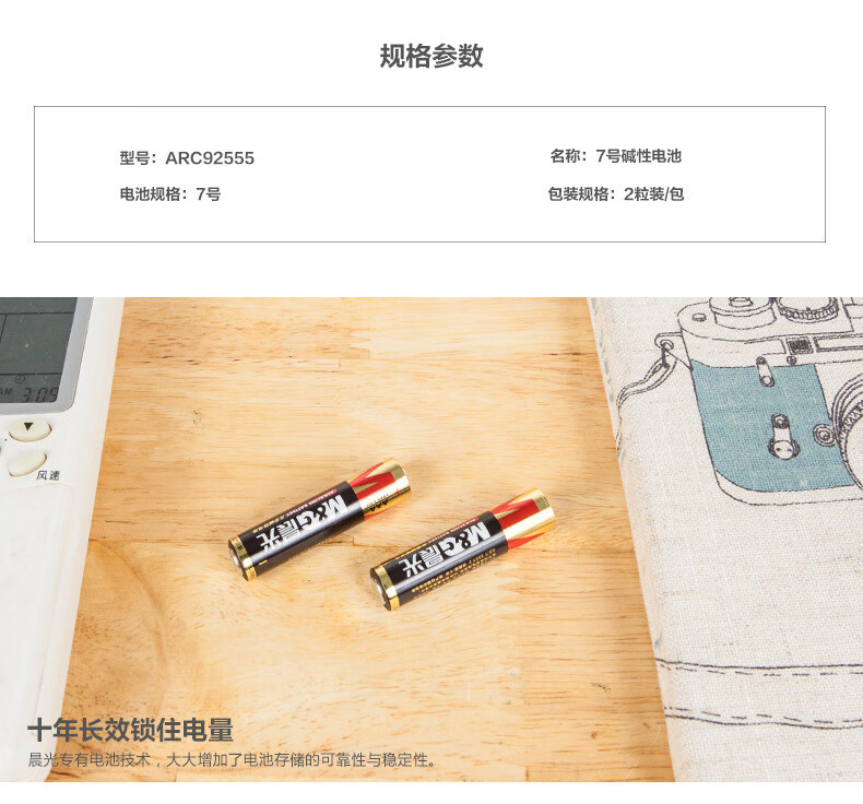 商品名稱:晨光ARC92555 7號堿性電池 空調(diào)電視遙控電池計算器 2粒/卡