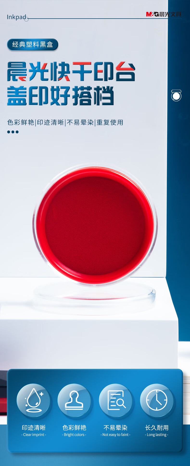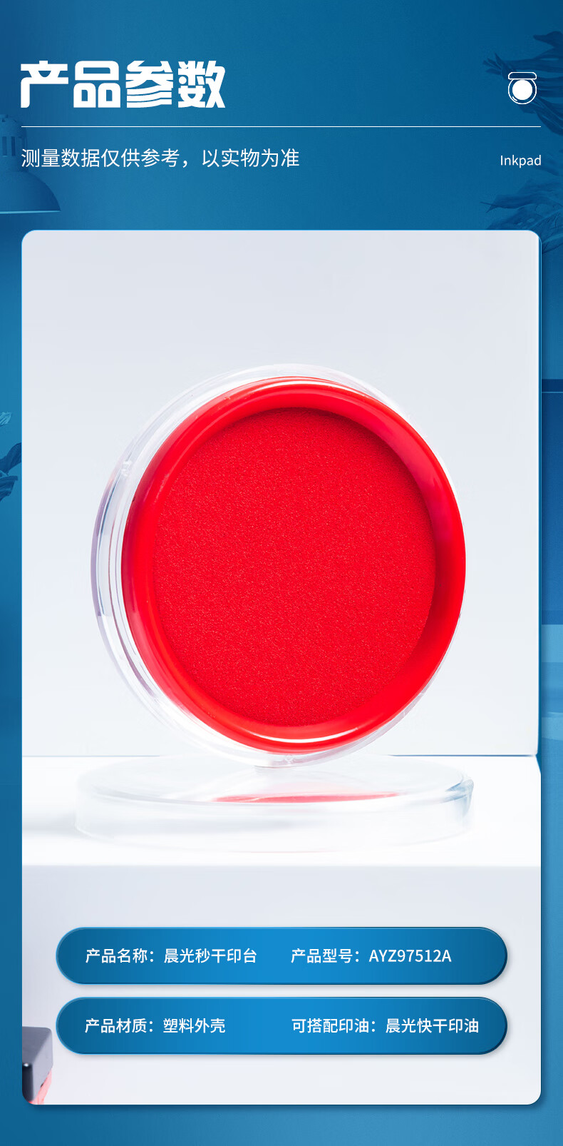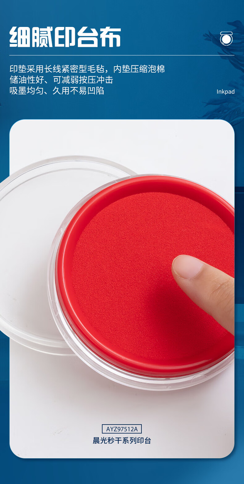 商品名稱:晨光AYZ97512 快干印臺 φ80mm透明圓形財務快干印臺印泥 紅色單個裝