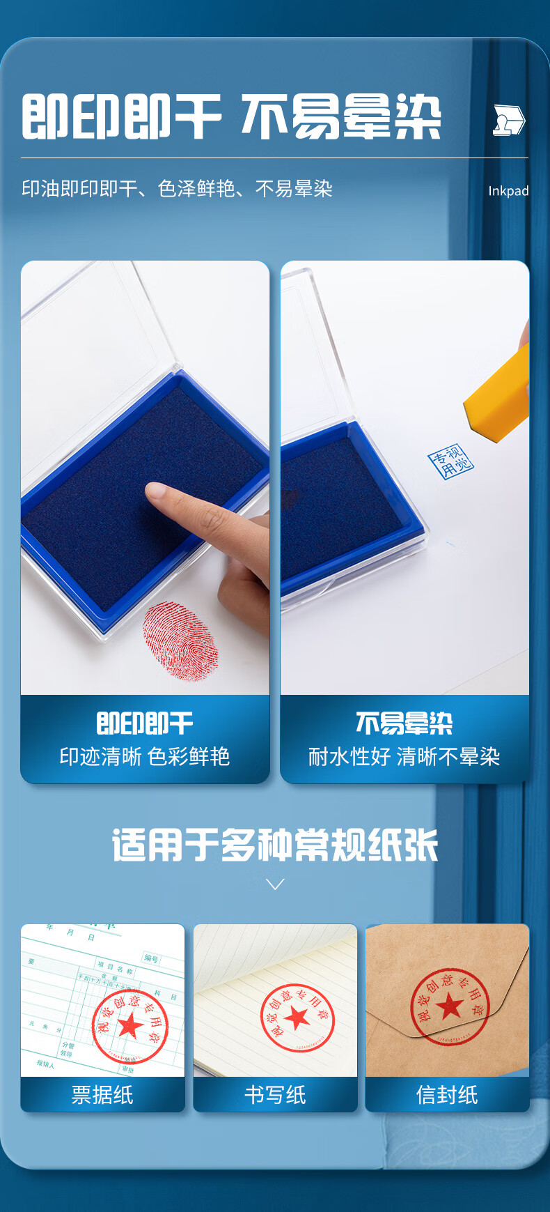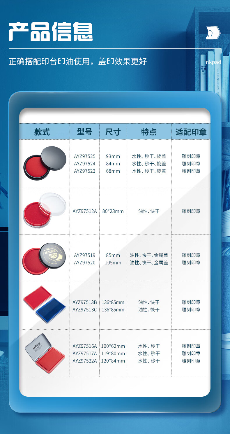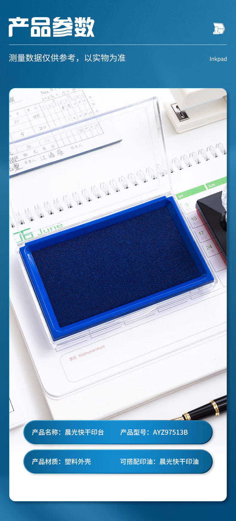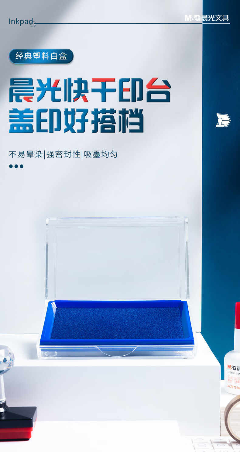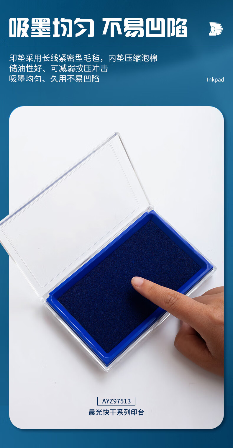 商品名稱:晨光AYZ97513 快干印臺 137*88mm透明外殼方形快干印臺印泥 藍色單個裝