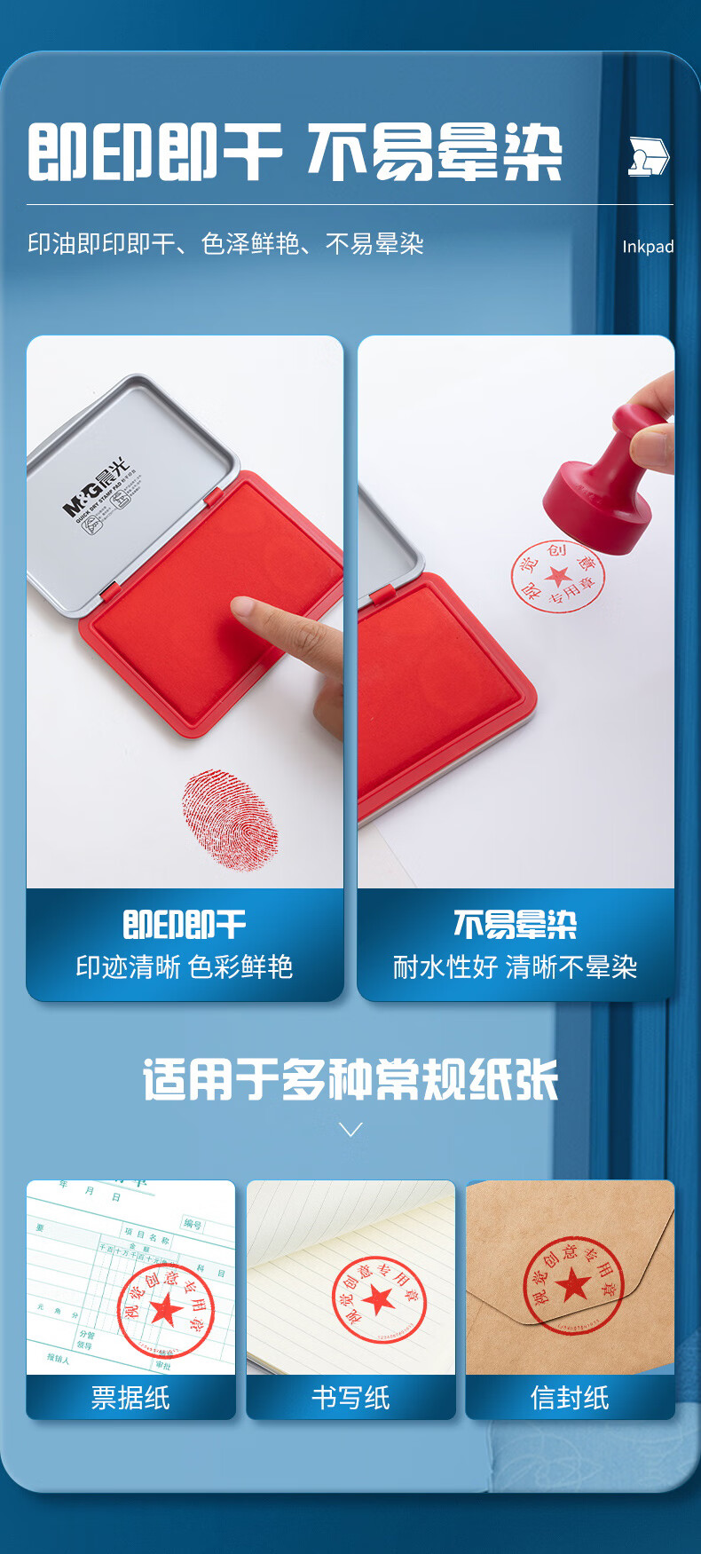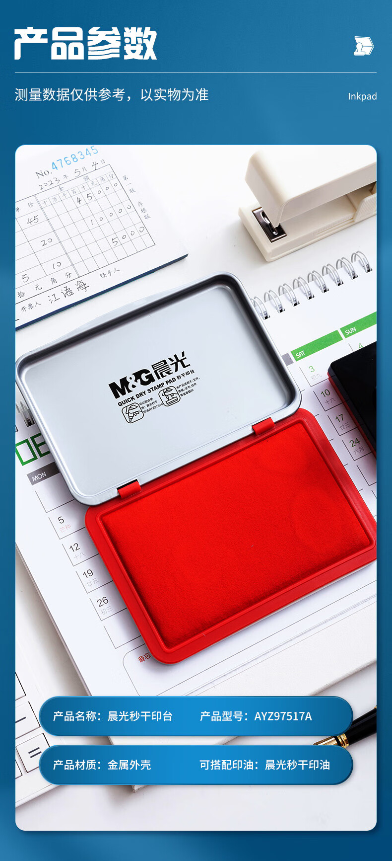 商品名稱(chēng):晨光120*80mm金屬方形中號(hào)秒干印臺(tái)印泥 紅色單個(gè)裝AYZ97517