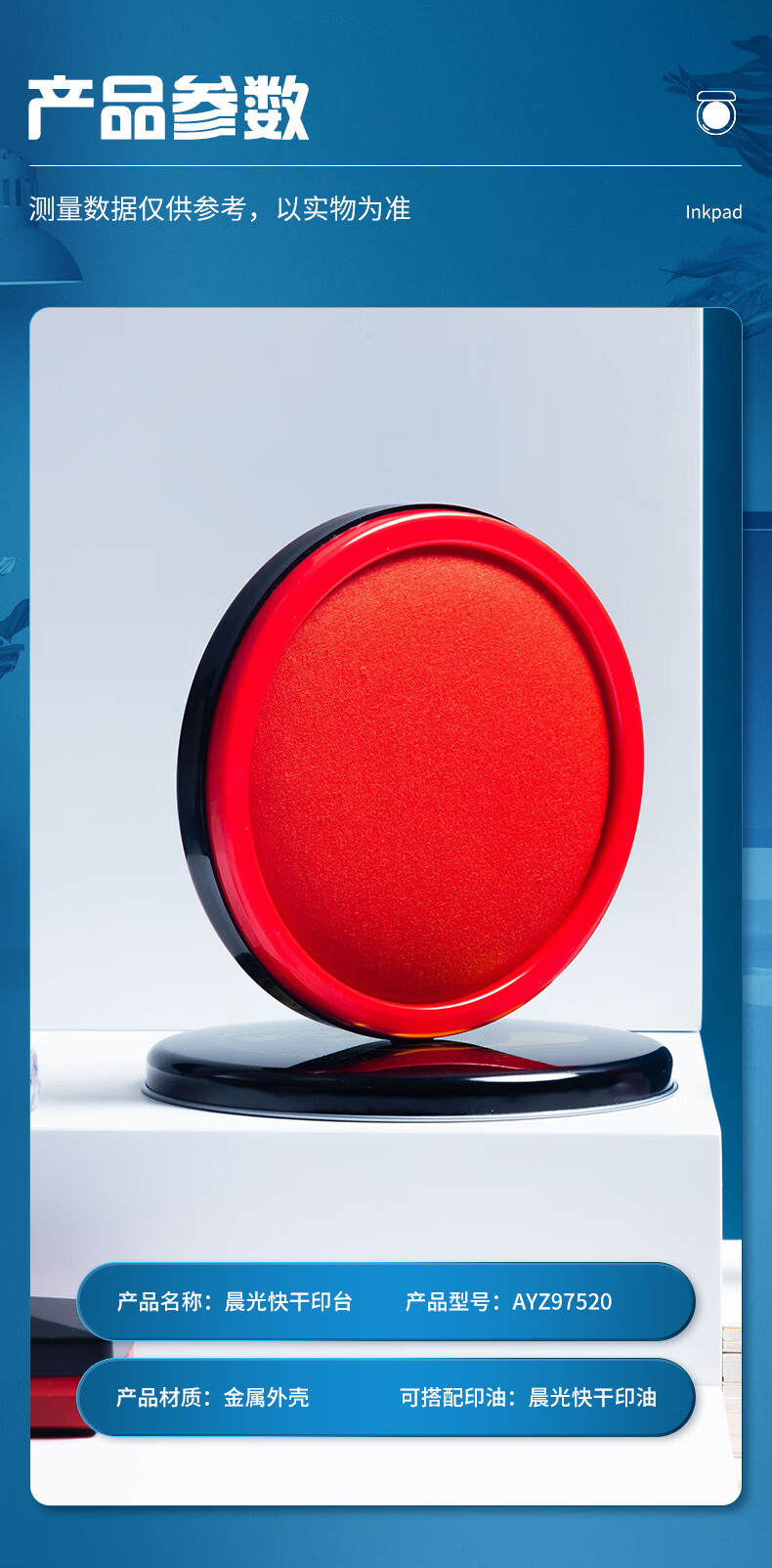商品名稱:晨光105mm金屬圓蓋財(cái)務(wù)快干印臺(tái)印泥 紅色 單個(gè)裝AYZ97520