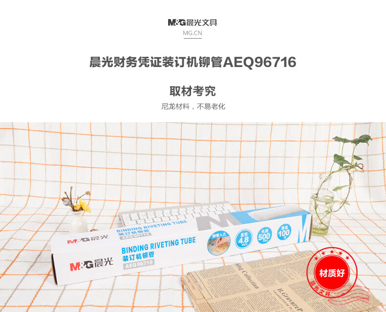 商品名稱:晨光4.8mm*500mm財(cái)務(wù)裝訂機(jī)鉚管 透明裝訂耗材 100支/盒AEQ96716