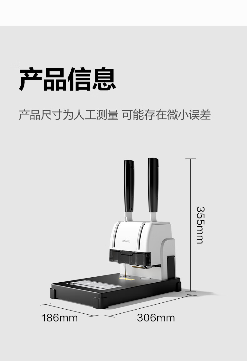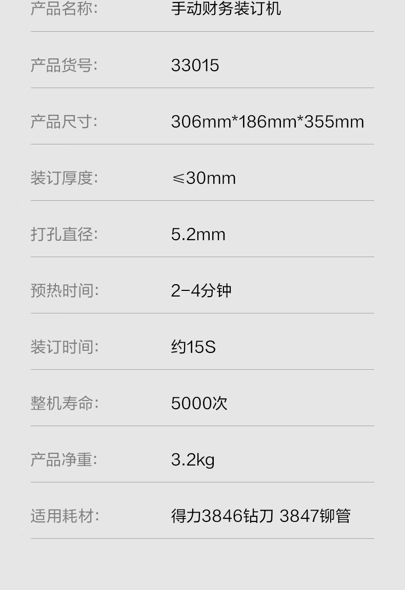 商品名稱:得力30mm熱熔手動(dòng)裝訂機(jī) 300頁財(cái)務(wù)裝訂機(jī)手動(dòng)打孔機(jī)33015