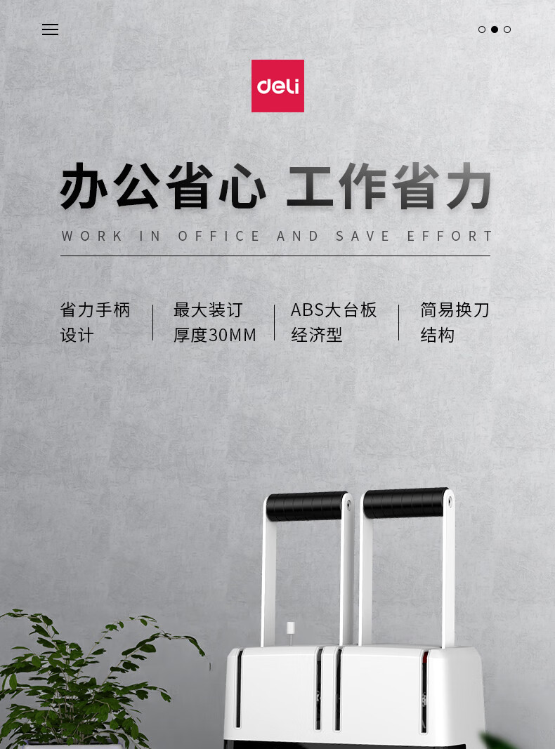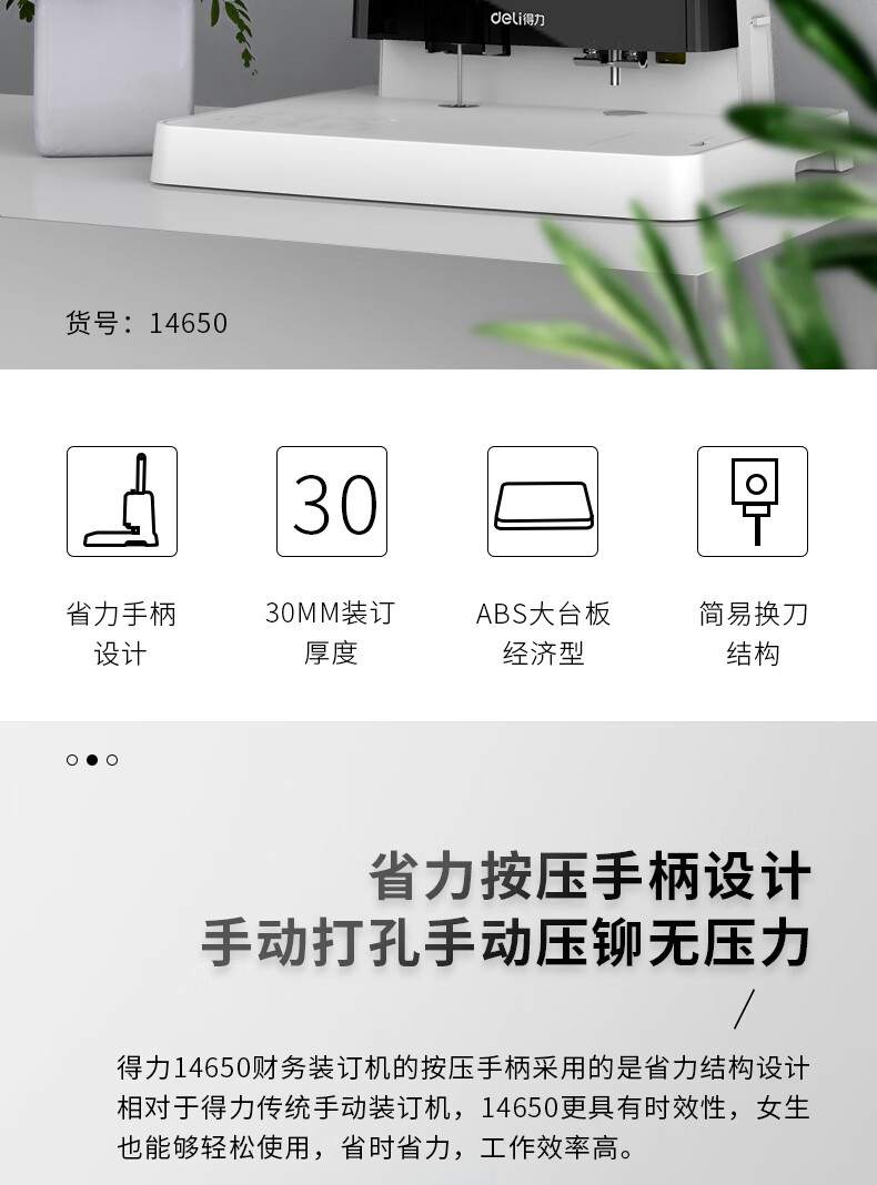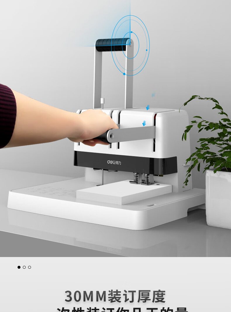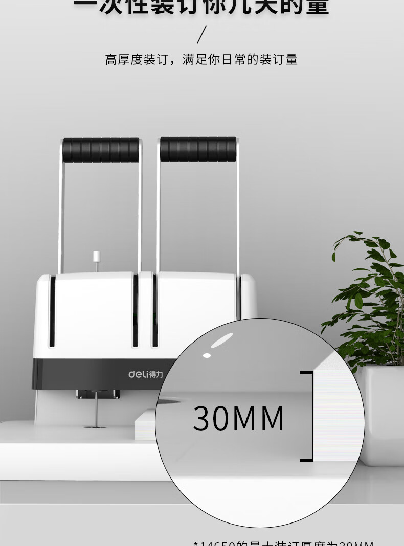 商品名稱:得力30mm鉚管熱熔裝訂機(jī) 300頁手動財務(wù)裝訂打孔機(jī) 14650