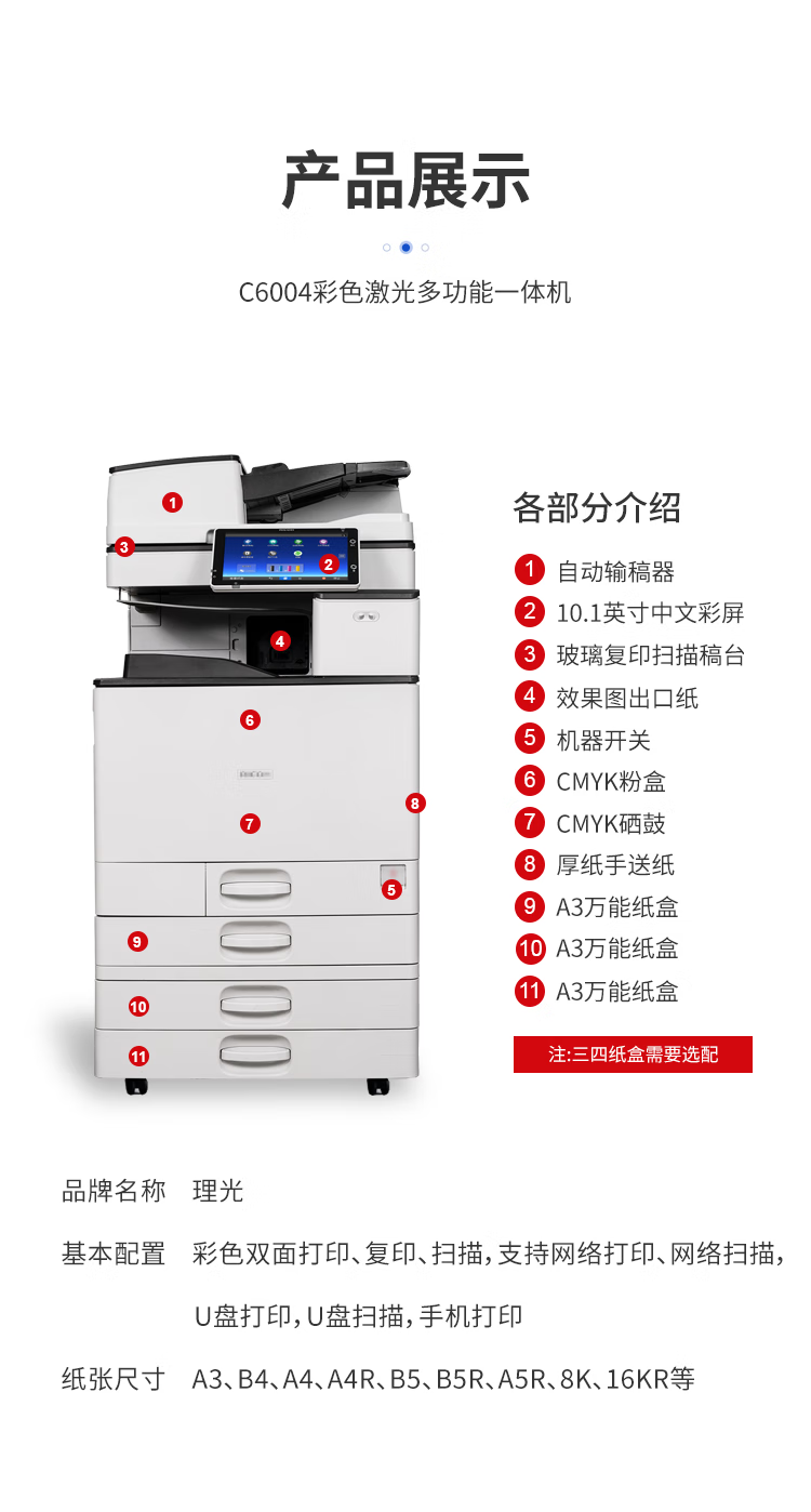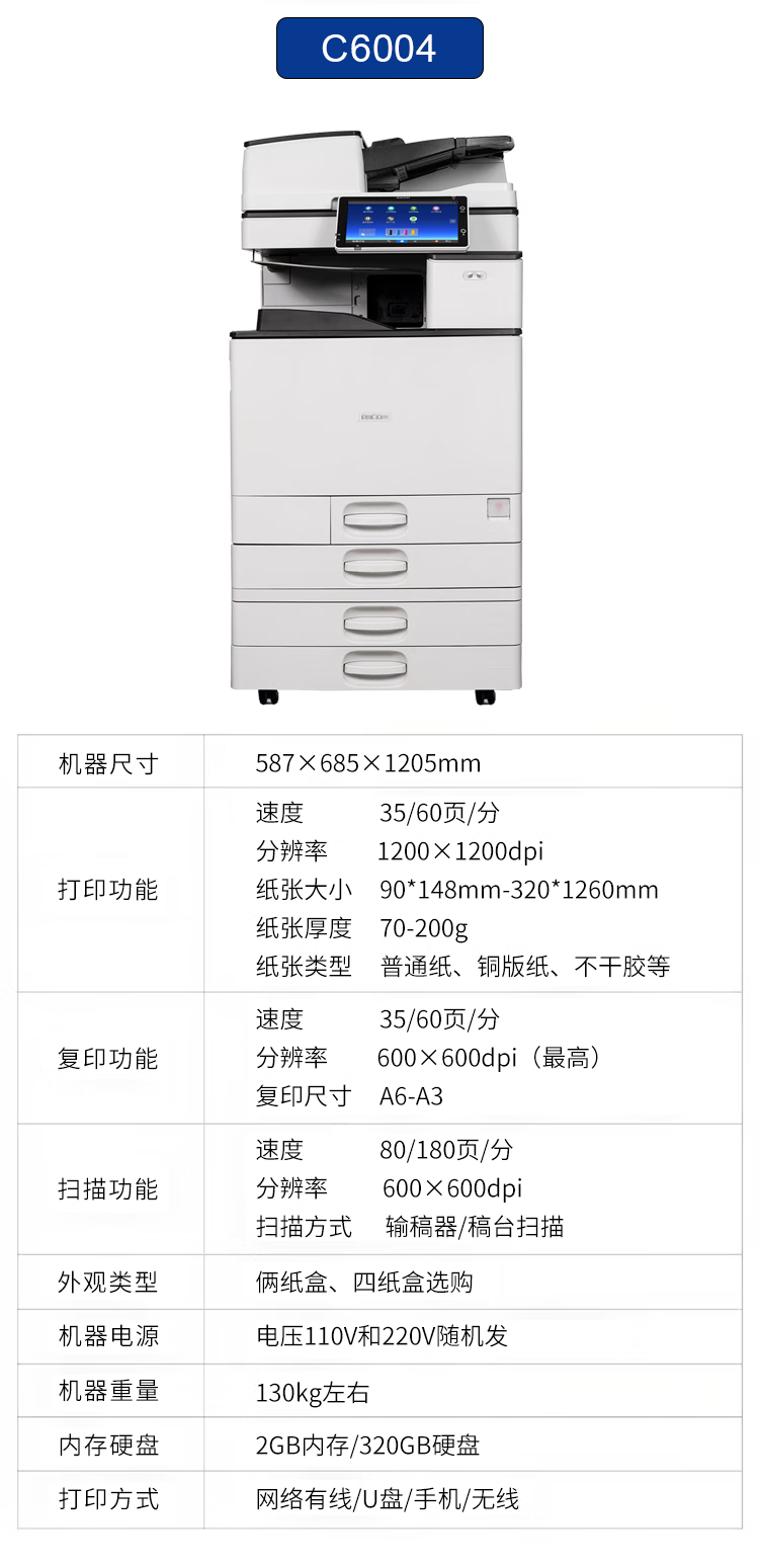 商品名稱:理光6004彩色激光打印機租賃 湛江復印機一體機出租