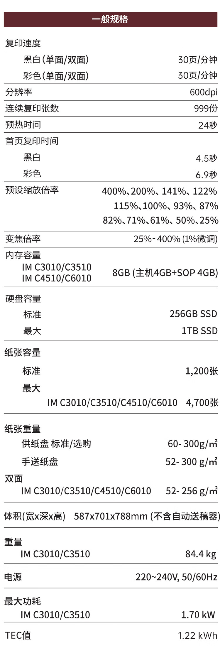 商品名稱:理光 IM C3010 A3彩色多功能數碼復合機 30頁/分鐘