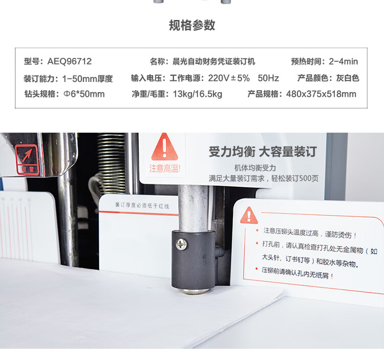 商品名稱:晨光自動(dòng)財(cái)務(wù)憑證裝訂機(jī) 膠圈裝訂機(jī) 夾條打孔機(jī) 單臺裝AEQ96712